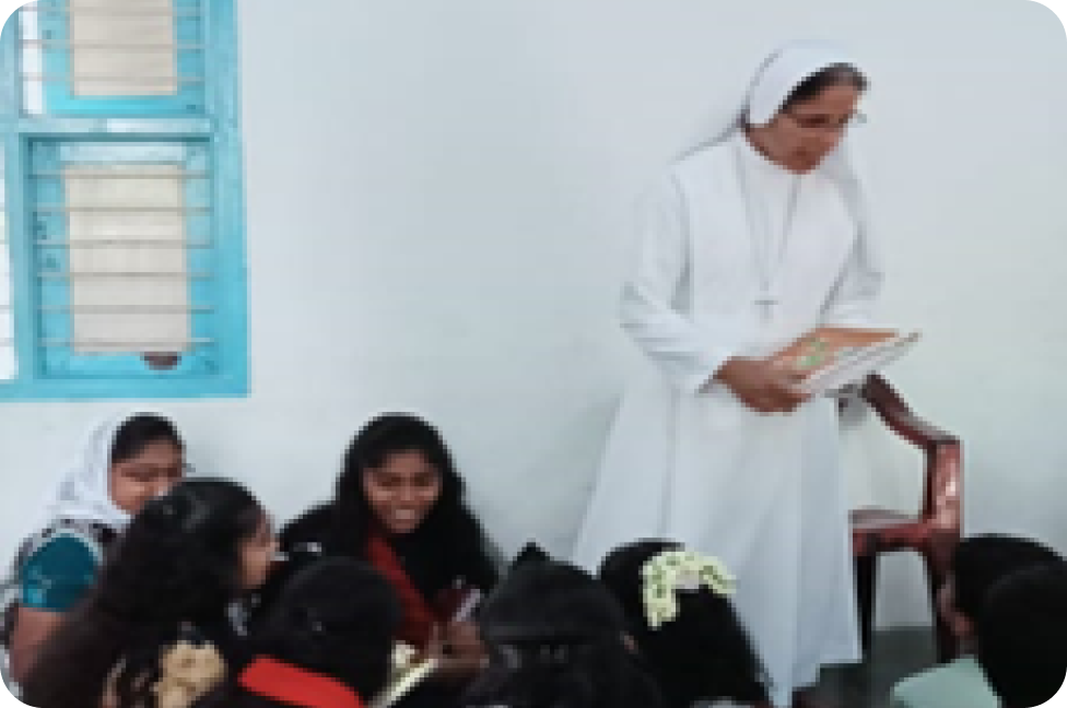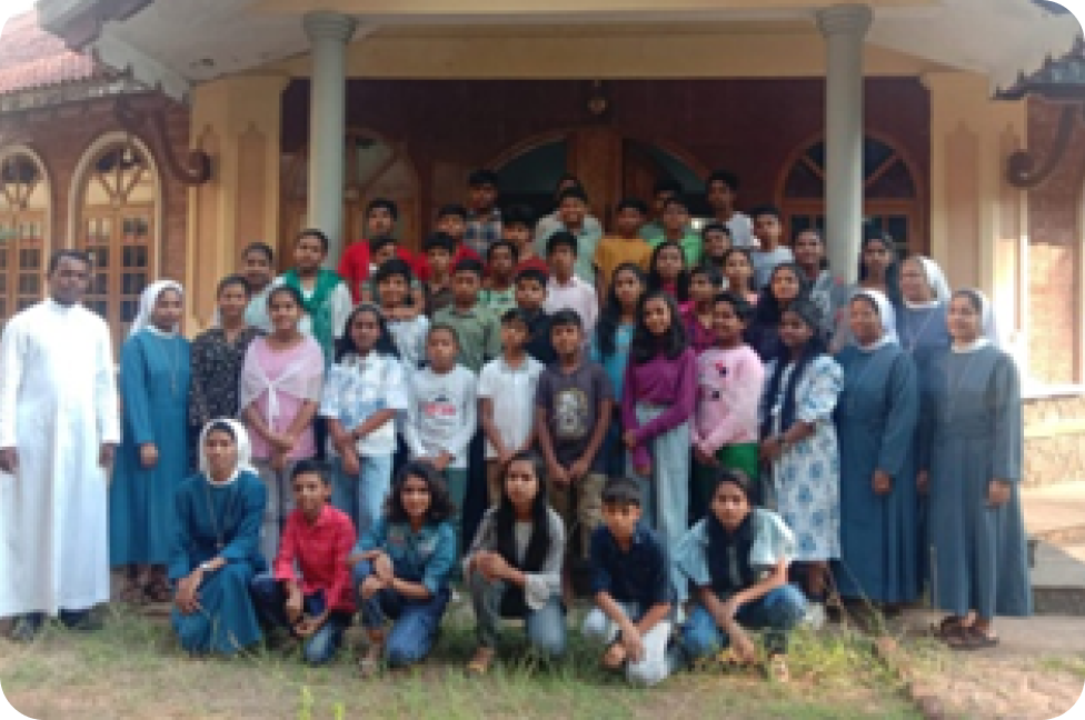 In 1991 Dimesse sisters arrived a Pallikkara, Kasaragod District, in Kannur Diocese. Right away the sisters started involving themselves with the activities of the parish. Living with the fishermen, the sisters food themselves amidst a great mission. The people were illiterate and their moral life as well as culture was so miserable. They spent their life with the poor folk in order to bring them forward in all the aspects of their life. Now the face of the sea shore people has changed completely. Meanwhile they established a Nursery School which is a High School today. Besides the work in the school, our sisters are involved in the pastoral activities of the parish such as teaching catechism, youth ministry, family apostolate and social work under the guidance of Kannur Diocese.