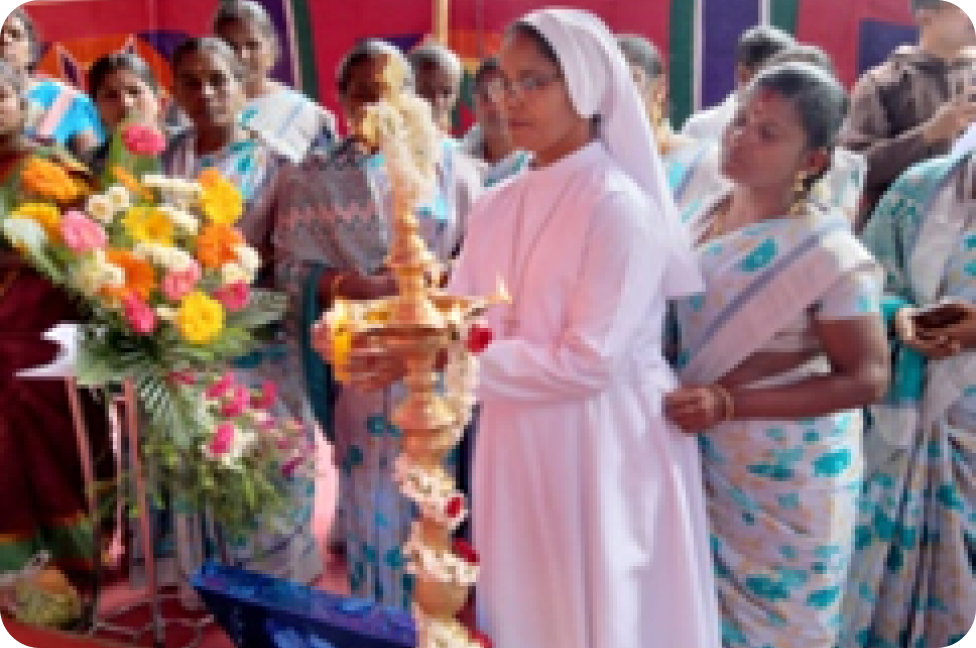 In 2006 the Dimesse moved to another community, Mariyasadan convent which was opened in the state of Tamil Nadu. Our superior General with her council responded to one of our great desires of having a community outside Kerala. The community is surrounded by about 13 villages, people who struggle for their very necessary things. It isreally a mission land where the selfless love of the sisters is translated into generosity in order to relieve the people from their daily sufferings. There we have opened a dispensary so that the first medical help is assured to the people. Our sisters are committed in the acts of charity as the time and place require of. Uplifting the women was a just cause for taking up the activities like teaching the stitching and buying stitching machines for those who finish their study and some other hand craft works.